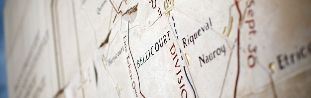 The 27th and 30th Divisions came to the vicinity after fighting Belgium earlier in September 1918. The St. Quentin Canal Tunnel passes beneath Bellicourt and Bony. It was part of the Germans’ formidable Hindenburg Line, which was broken by the American troops in a brilliant offensive in September 1918. The Bellicourt Monument lies above the tunnel.
