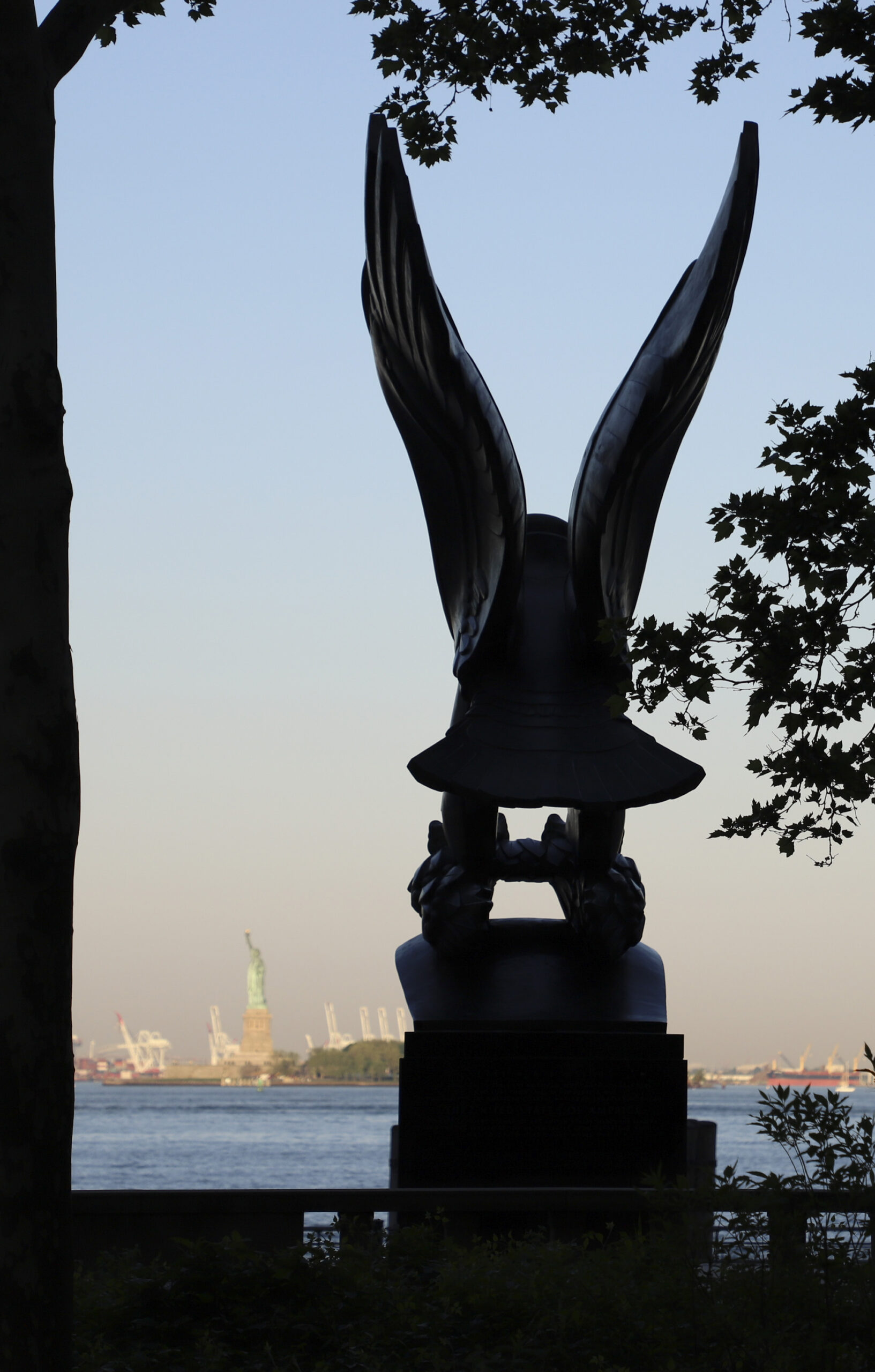This memorial commemorates those soldiers, sailors, Marines, coast guardsmen, merchant mariners and airmen who met their deaths in the service of their country in the western waters of the Atlantic Ocean during World War II. Its axis is oriented on the Statue of Liberty. On each side of the axis are four gray granite pylons upon which are inscribed the name, rank, organization, and state of each of the over 4,600 missing in the waters of the Atlantic. For names where an individual’s remains have subsequently been accounted for by the U.S. Department of Defense, a rosette is placed next to the name on the memorial to indicate that the person now rests in a known gravesite.