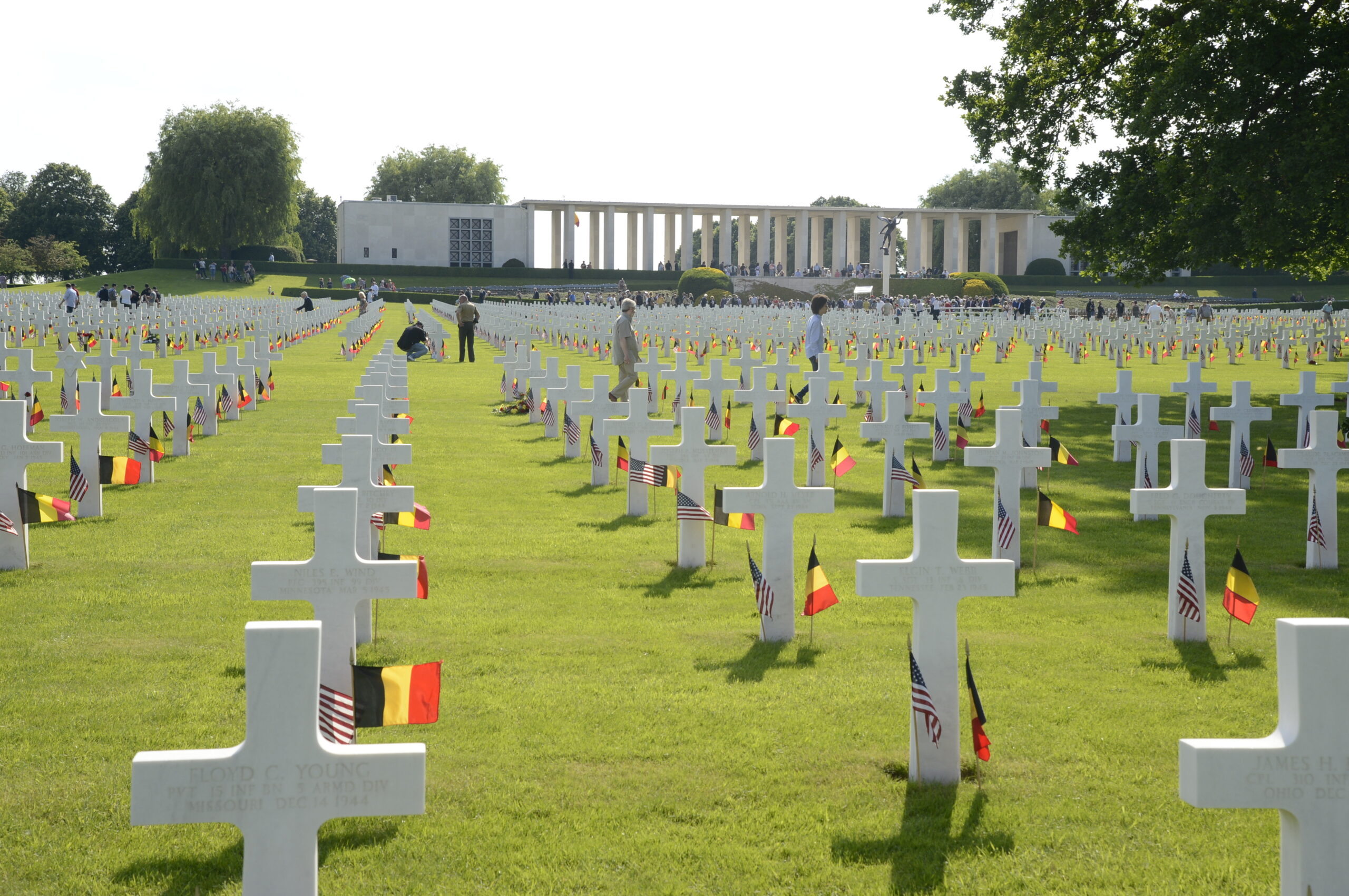 At the Henri-Chapelle American Cemetery and Memorial in Belgium, covering 57 acres, rest 7,987 of our military dead, most of whom lost their lives during the advance of the U.S. armed forces into Germany.