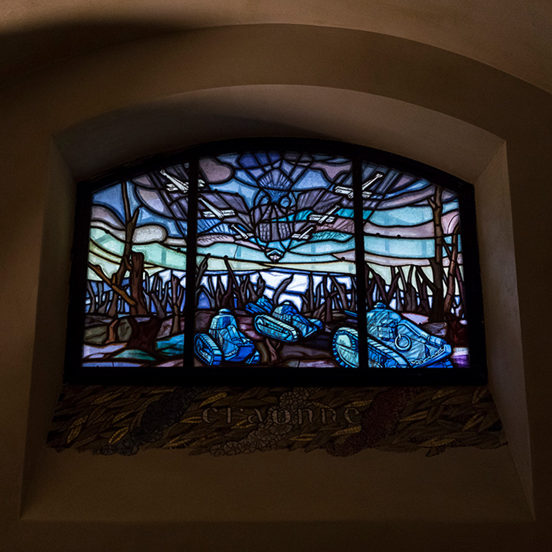 In the memorial crypt are 68 sarcophagi, one for each of the aviators of the Lafayette Flying Corps who lost their lives during World War I. Forty-nine of these aviators are entombed in the crypt along with two of their French commanding officers. The remainder rest in other locations, or their remains were never recovered. See the full listing of those who are honored at this site.