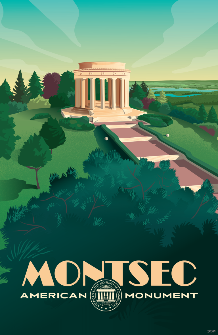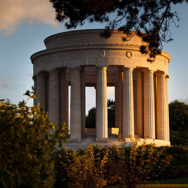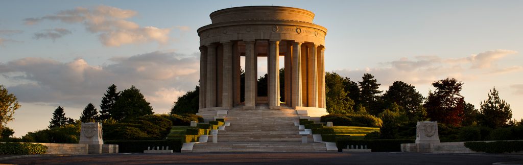 This majestic monument, commemorating the achievements of the American soldiers who fought in this region in 1917 and 1918, dominates the landscape for miles around. It commemorates reduction of the St. Mihiel Salient by the U.S. First Army, September 12-16, 1918, and operations of the U.S. Second Army, November 9-11. It also honors combat services of other U.S. divisions in this region and in Alsace and Lorraine. Names of nearby villages liberated by American troops are carved upon the outside frieze.