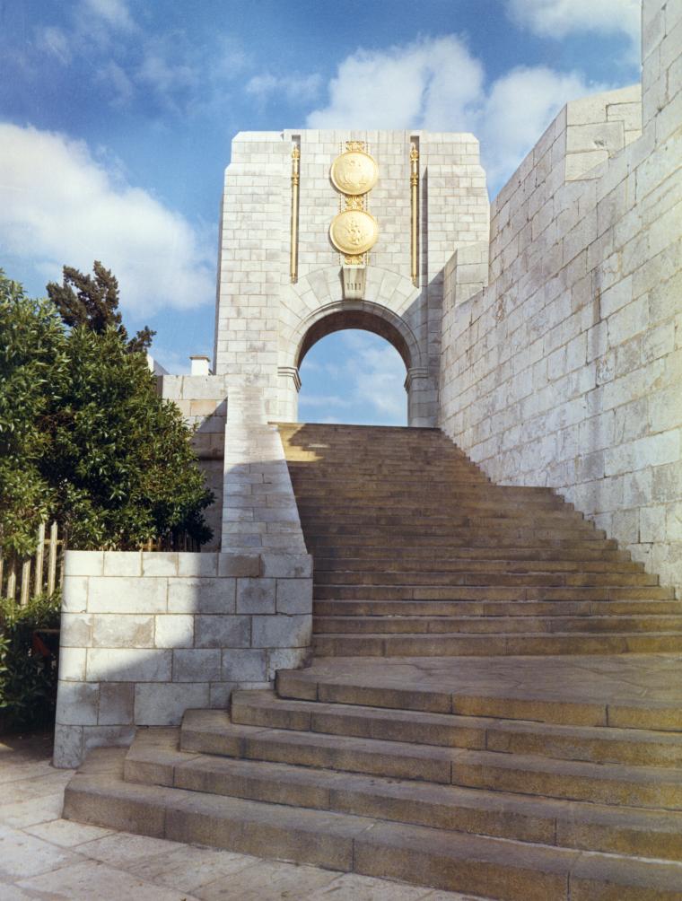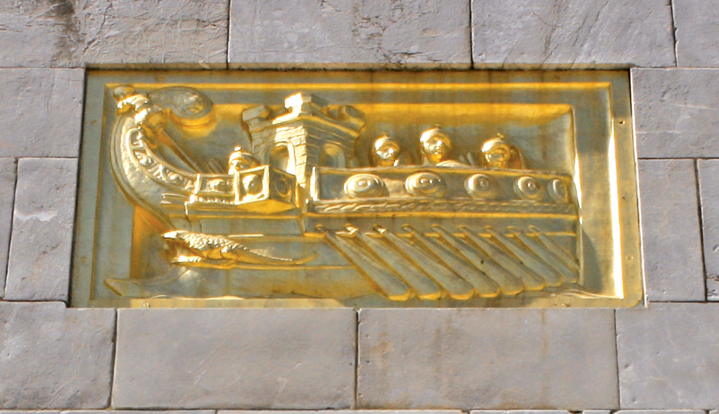 Steps lead downward from the south side of the Naval Monument to the busy harbor; thus its nickname of the “American Steps.”