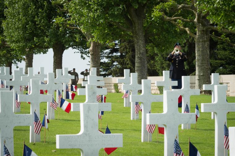 The World War I Somme American Cemetery and Memorial in France is sited on a gentle slope typical of the open, rolling Picardie countryside.