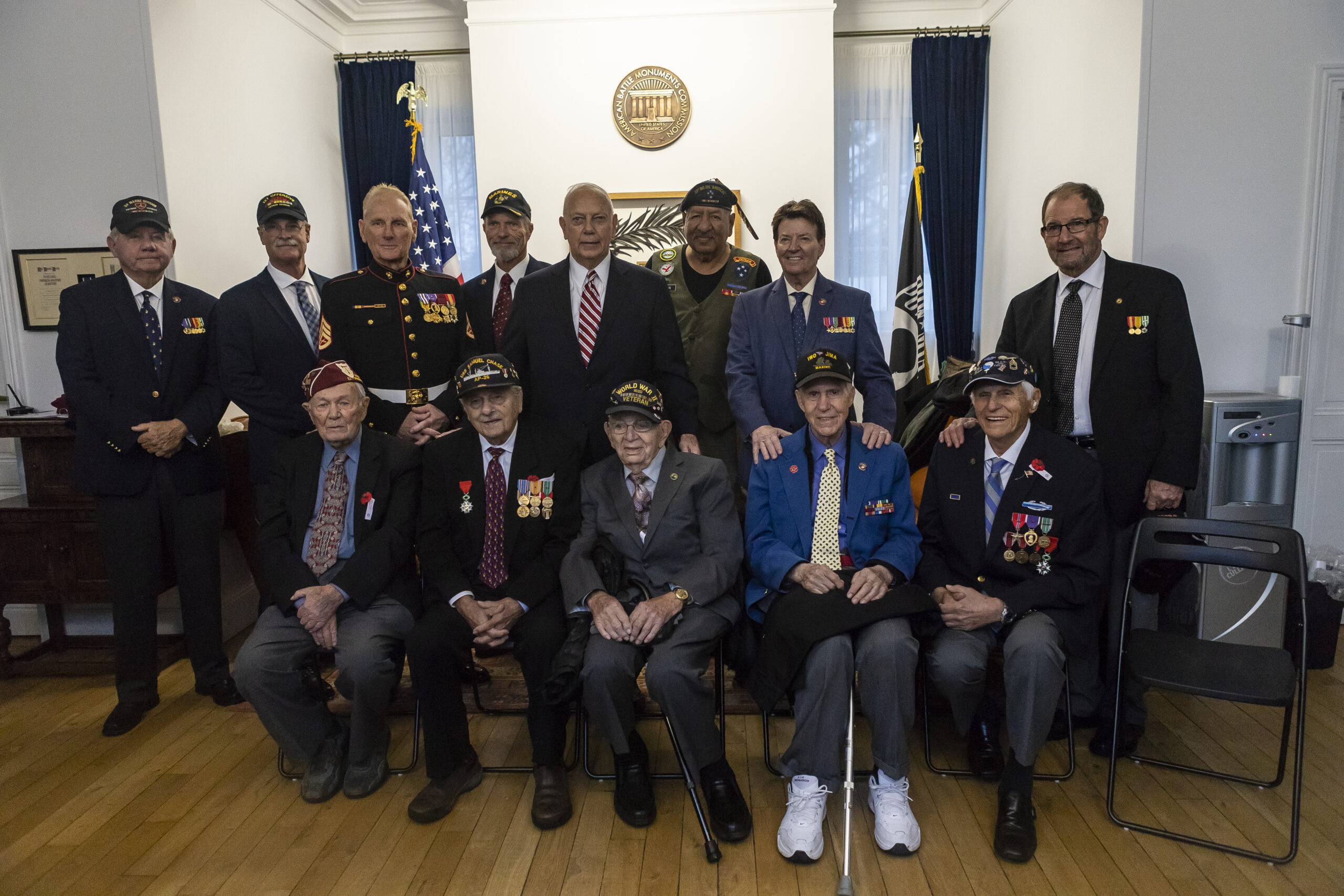 The World War I memorial chapel was enlarged by the addition of two loggias dedicated to the dead of World War I and World War II, respectively. In the rooms at the ends of the loggias are white marble figures in memory of those who lost their lives in the two wars. Inscribed on the loggia walls is a summary of the loss of life in our armed forces in each war, together with the location of the overseas commemorative cemeteries where our war dead are buried.