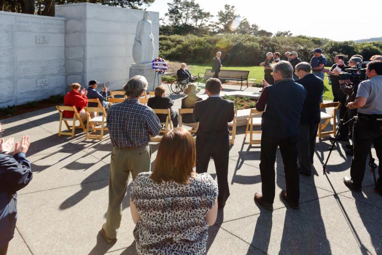 The World War II West Coast Memorial is located on a high ground overlooking the entrance to San Francisco Harbor.