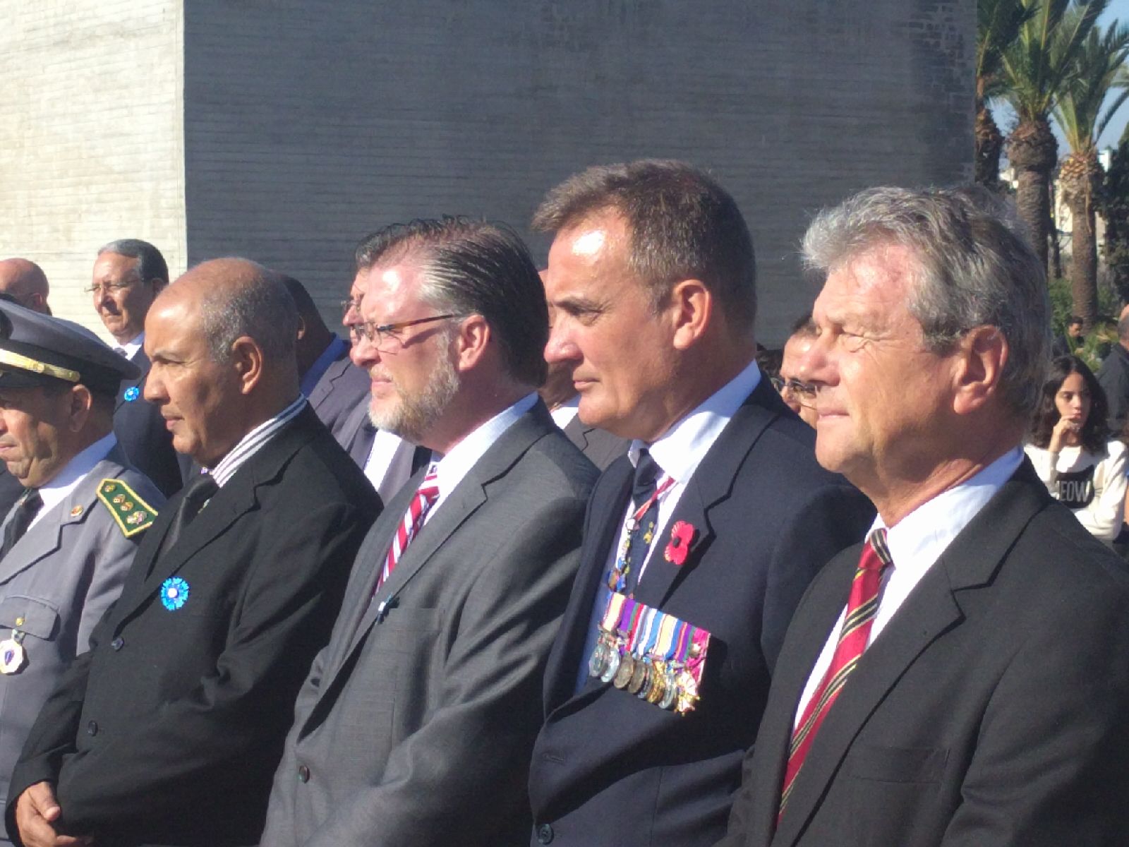 The bronze plaque, mounted on a solid block of Moroccan granite, commemorates the U.S. Western Task Force, which successfully made assault landings in Morocco at Mohammedia, Safi and Kenitra on November 8-11, 1942. This was the first ever trans-oceanic amphibious operation, which embarked from Hampton Roads, Va. and was comprised of American troops that were transported and supported by 100 naval vessels. The landings were made near Casablanca on the Atlantic coast of French Morocco.