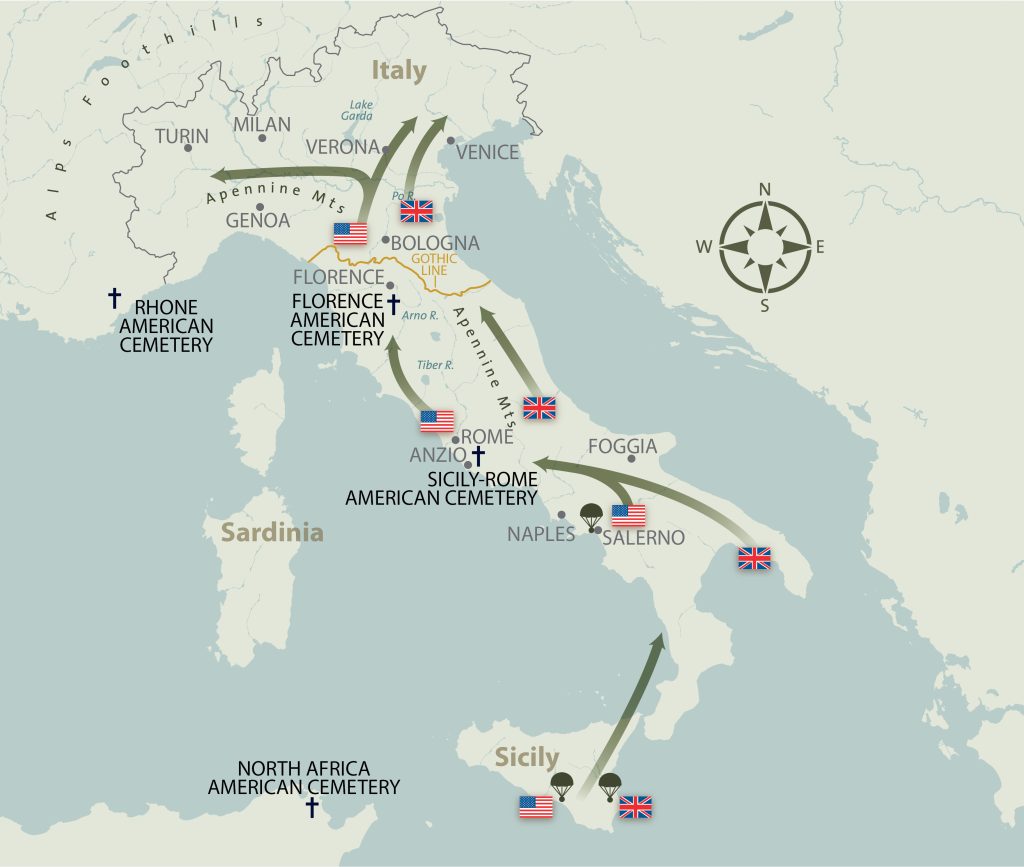 The Florence American Cemetery and Memorial site in Italy covers 70 acres. The wooded hills that frame its western perimeter rise several hundred feet.