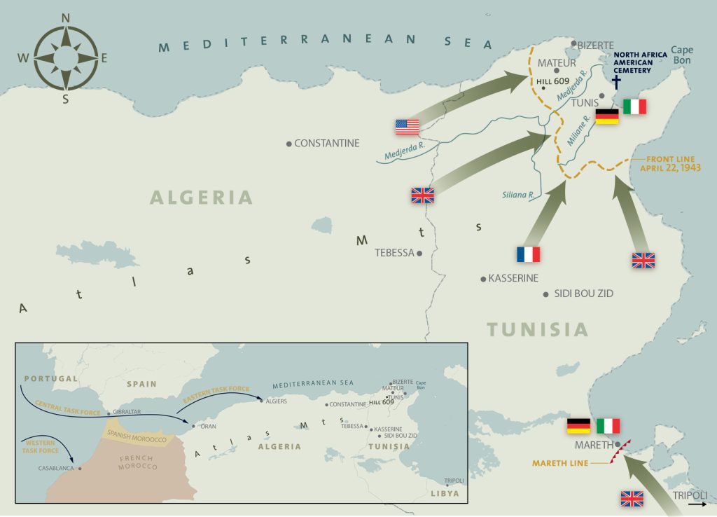 Street Address:553 Rue Roosevelt, 2016 Carthage, Tunisia North Africa American Cemetery is located in close proximity to the site of the ancient city of Carthage, Tunisia, destroyed by the Romans in 146 B.C., and lies over part of the site of Roman Carthage. It is near the present town of the same name, 10 miles from the city of Tunis and five miles from its airport.