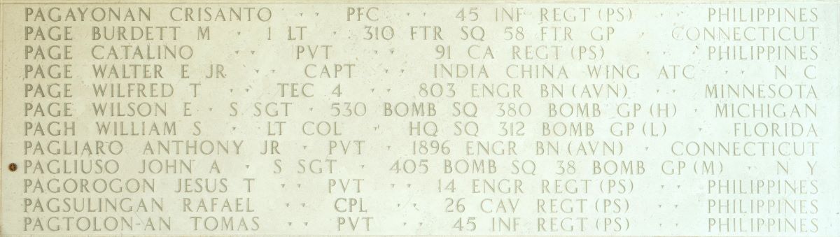 U.S. Army Air Forces Staff Sgt. John A. Pagliuso, 24, of Lyons, New York, killed during World War II, was accounted for on March 17. Pagliuso was assigned to the 405th Bombardment Squadron, 38th Bombardment Group.