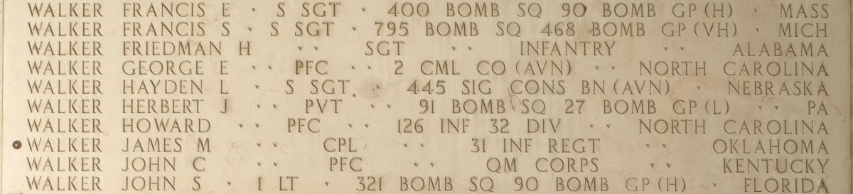U.S. Army Cpl. James M. Walker, 46, of Pawnee, Oklahoma, who was captured and died as a prisoner of war during World War II, was accounted for March 19, 2024. Walker was a member of 31st Infantry Regiment when Japanese forces invaded the Philippine Islands.