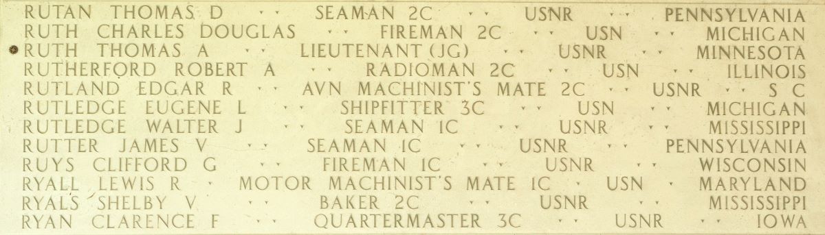 U.S. Navy Lt. j.g. Thomas A. Ruth, 26, killed during World War II, was accounted for April 8. Ruth was a member of Fighting Squadron 21, Carrier Air Group 21.