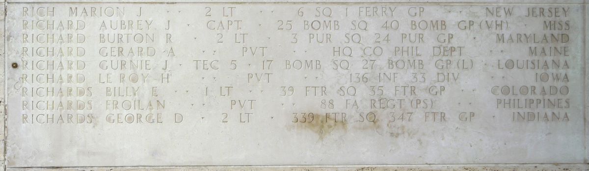 U.S. Army Air Forces Technician Fifth Grade Gurnie J. Richard, 22, who was captured and died as a prisoner of war during World War II, was accounted for Aug. 26. Richard was assigned 17th Bombardment Squadron, 27th Bombardment Group, when Japanese forces invaded the Philippine Islands in December 1942.