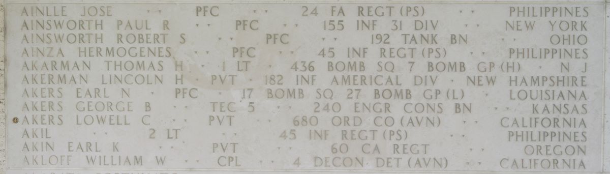 U.S. Army Air Forces Pvt. Lowell C. Akers, 21, who was captured and died as a prisoner of war during World War II, was accounted for Sept. 23. Akers was assigned to First Platoon, 680th Ordnance Company (Aviation Pursuit), when Japanese forces invaded the Philippine Islands in December 1942.