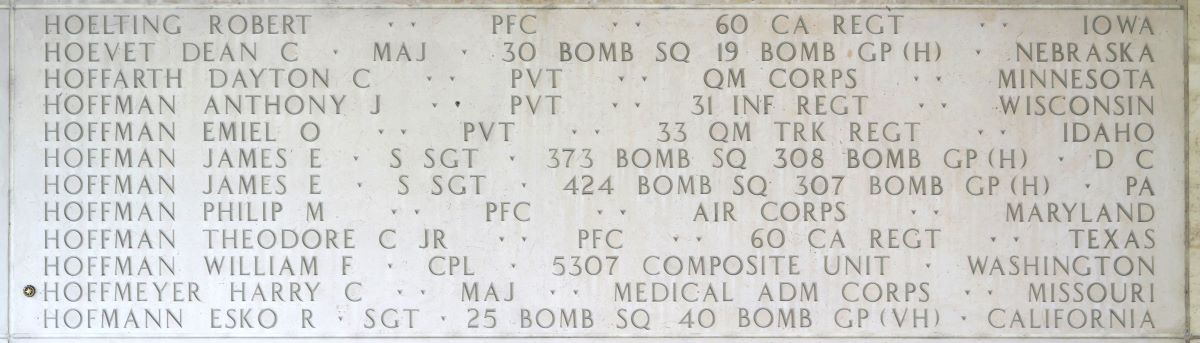 U.S. Army Maj. Harry C. Hoffmeyer, 51, killed during World War II, was accounted for Oct. 10. Hoffmeyer was assigned to the Medical Department on the Bataan Peninsula, in the Philippines.