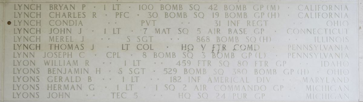 U.S. Army Pvt. Condia Lynch Jr., 20, who was captured and died as a prisoner of war during World War II, was accounted for Aug. 18. Lynch was a member of 31st Infantry Regiment, when Japanese forces invaded the Philippine Islands in December 1942.