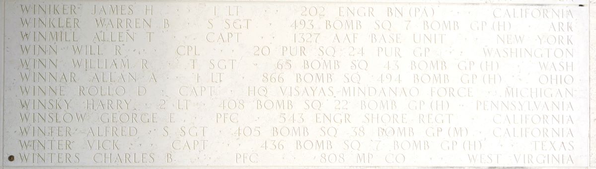 U.S. Army Pfc. Charles B. Winters, 22, who was captured and died as a prisoner of war during World War II, was accounted for Aug. 14. Winters was a member of 808th Military Police Company, when Japanese forces invaded the Philippine Islands in December 1942.