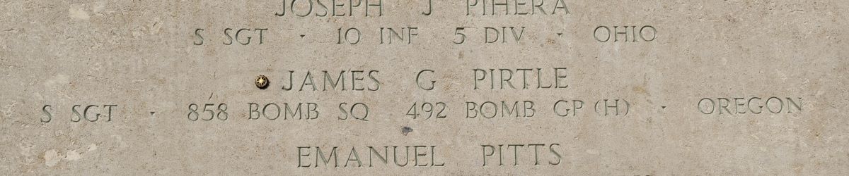 U.S. Army Air Forces Staff Sgt. James G. Pirtle, 31, killed during World War II, was accounted for May 8. Pirtle served as the tail gunner aboard a B-24 Liberator bomber with the 858th Bombardment Squadron, 492nd Bombardment Group, Eighth U.S. Air Force.