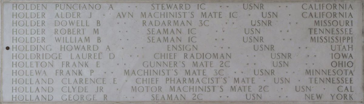 U.S. Navy Reserve Ensign Howard A. Holding, 22, killed during World War II, was accounted for on June 10. Holding was assigned Fighting Squadron Twenty, USS Enterprise.
