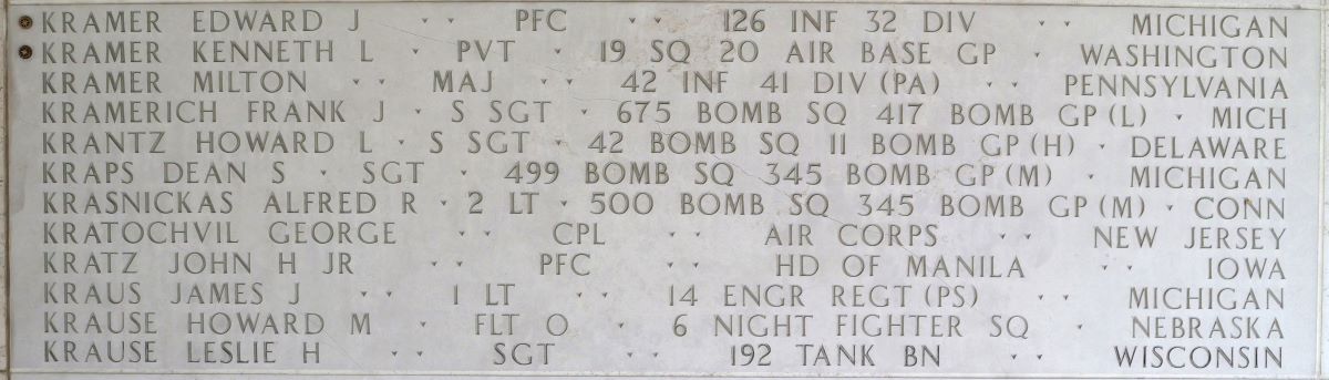U.S. Army Pvt. Kenneth L. Kramer, 20, who was captured and died as a prisoner of war during World War II, was accounted for June 30. Kramer was a member of 19th Air Base Squadron, 20th Air Base Group in the Philippines.