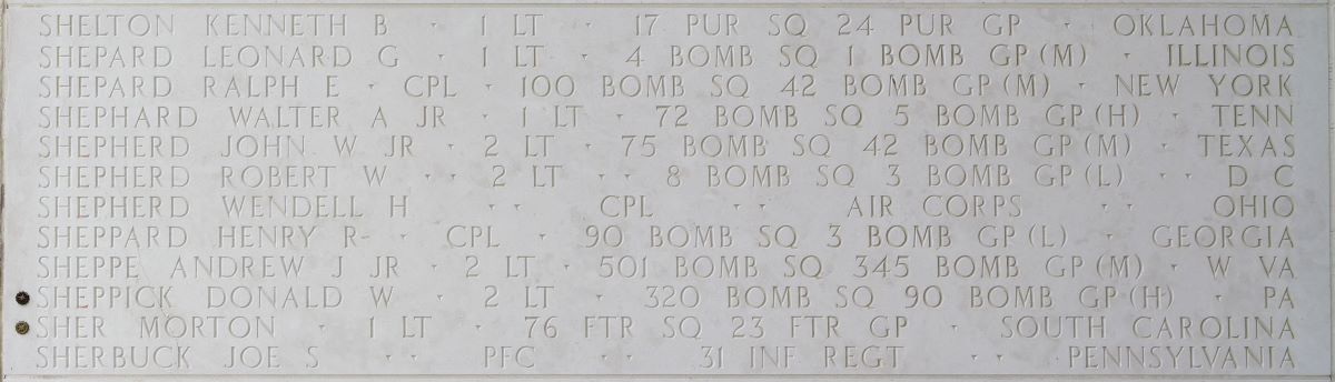 U.S. Army Air Forces 1st Lt. Morton Sher, 22, killed during World War II, was accounted for on June 11. Sher was a fighter pilot assigned to 76th Fighter Squadron, 23rd Fighter Group, 14th Air Force.