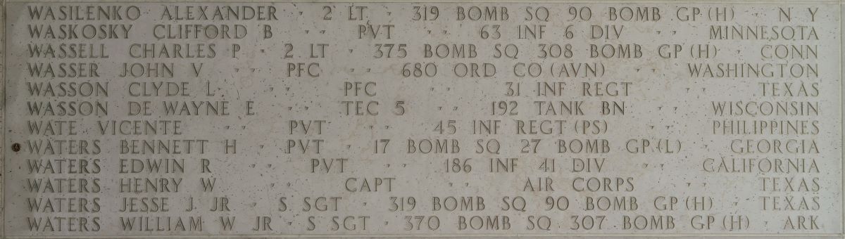 U.S. Army Air Forces Pvt. Bennett H. Waters, 26, killed during World War II, was accounted for June 18. Waters was assigned to the 17th Bombardment Squadron, 27th Bombardment Group on the Bataan Peninsula, in the Philippines.