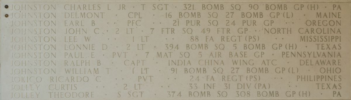 U.S. Army Cpl. Delmont Johnston, 21, of Monmouth, Maine, who was captured and died as a prisoner of war during World War II, was accounted for March 18, 2025. In late 1942, Johnston was a member of 16th Bombardment Squadron, 27th Bombardment Group (Light), when Japanese forces invaded the Philippine Islands in December.