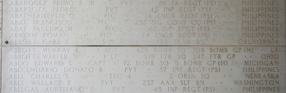 U.S. Army Staff Sgt. Carl F. Abbott, 35, who was captured and died as a prisoner of war during World War II, was accounted for Jan. 5. In late 1941, Abbott was a member of Company C, 194th Tank Battalion, when Japanese forces invaded the Philippine Islands in December.