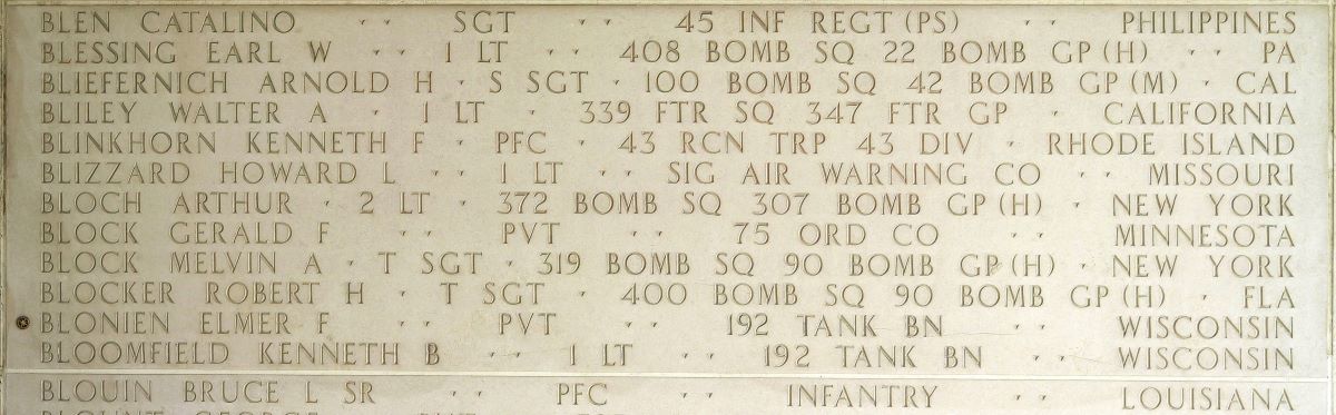 U.S. Army Pvt. Elmer F. Blonien, 27, who was captured and died as a prisoner of war during World War II, was accounted for Jan. 5. In late 1941, Blonien was a member of Company A, 192nd Tank Battalion, when Japanese forces invaded the Philippine Islands in December.