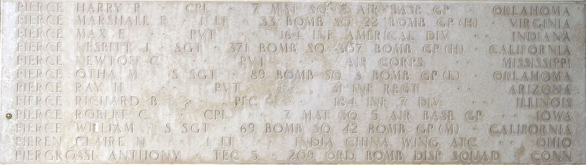 U.S. Army Air Forces Cpl. Robert C. Pierce, 28, who was captured and died as a prisoner of war during World War II, was accounted for Jan. 6. In late 1941, Pierce was a member of the 7th Materiel Squadron, 5th Air Base Group, when Japanese forces invaded the Philippine Islands in December.