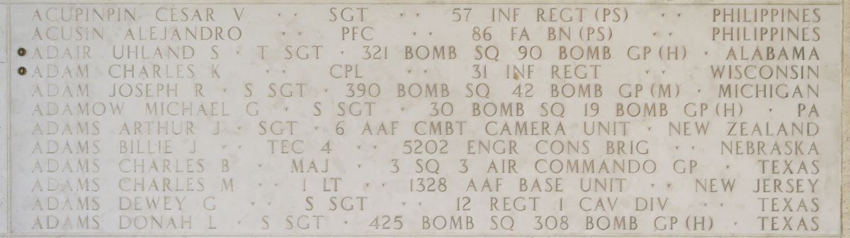 U.S. Army Cpl. Charles K. Adam, 25, who was captured and died as a prisoner of war during World War II, was accounted for Jan. 20. In late 1941, Adam was a member of the 31st Infantry Regiment when Japanese forces invaded the Philippine Islands in December.