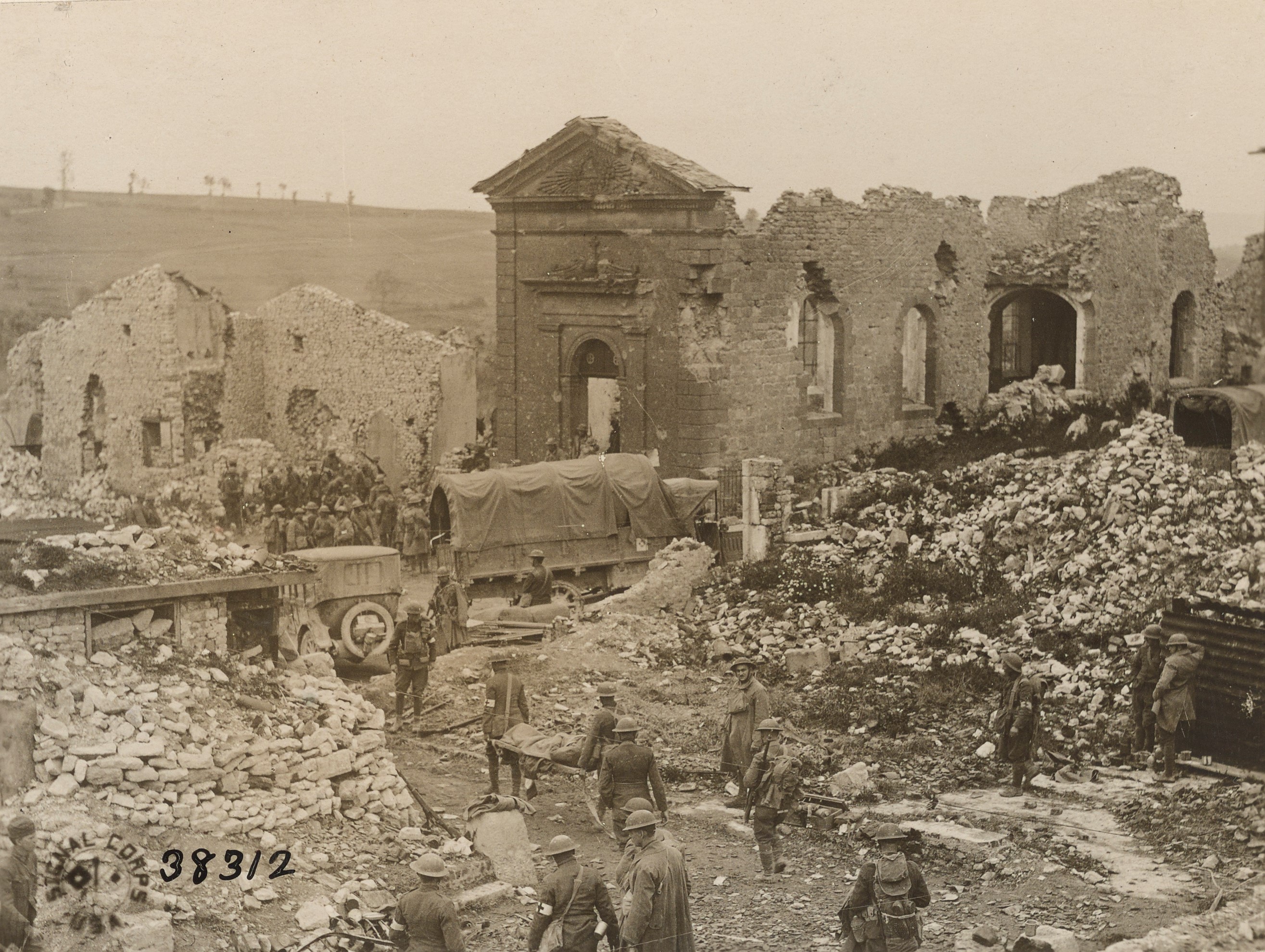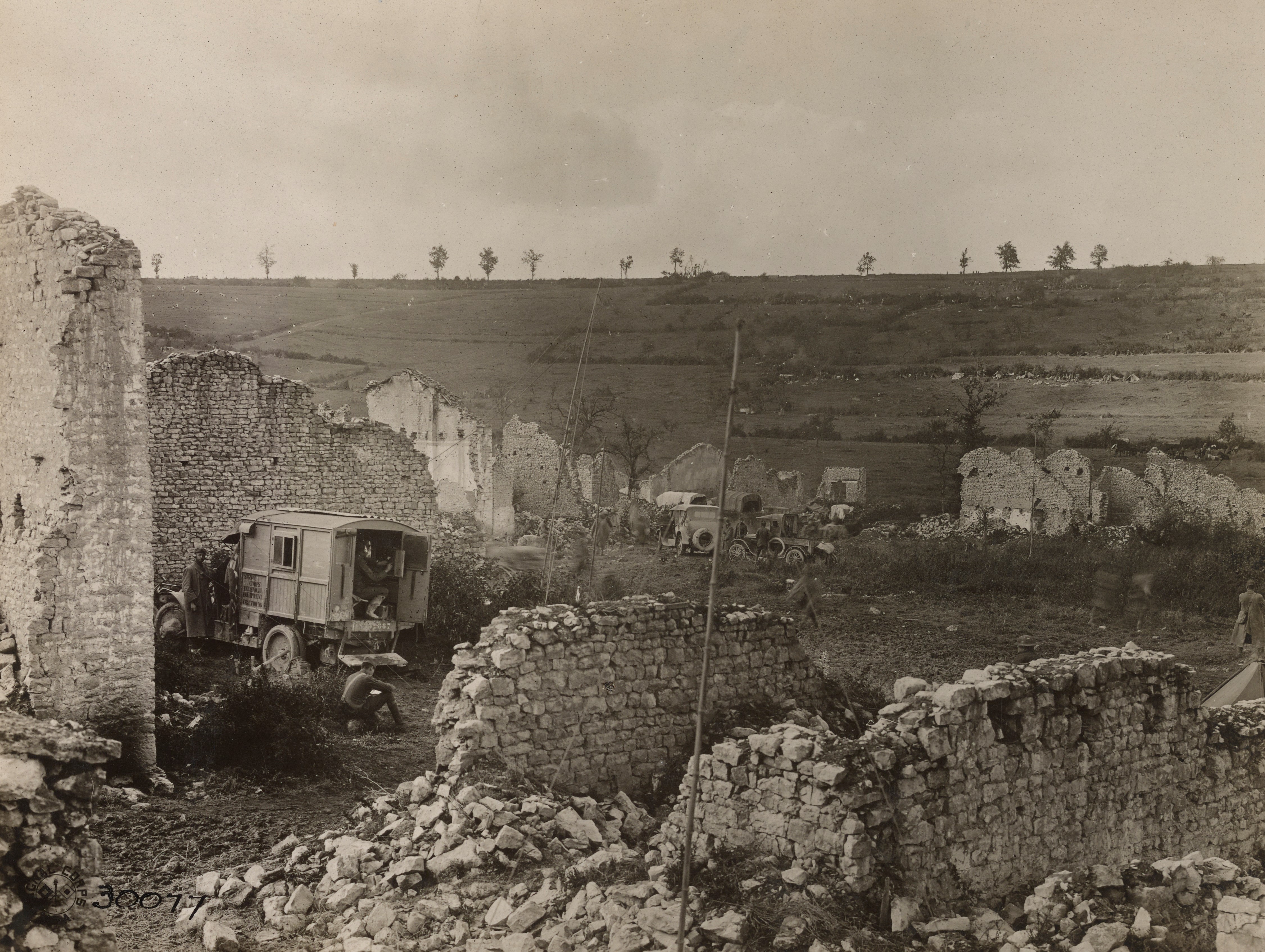 Dunn, Sergeant First Class C. E. View showing the 4th Division radio outfit working among the ruins of Cuisy… Photograph. October 1, 1918. National Archives and Records Administration (111-SC-30077). Image.