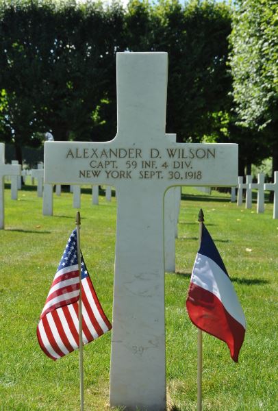 Captain Alexander D. Wilson was buried in a temporary grave in Cuisy, Meuse, France. It was not until after 1921 that the permanent Meuse-Argonne American Cemetery opened and began reinterring American soldiers. Captain Wilson’s family decided to inter his remains in the new cemetery.