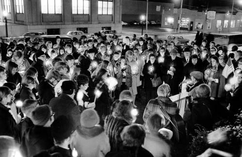 Though a high percentage of Fort Wayne residents worked at one of these manufacturing plants and generally supported the Vietnam War, there were anti-war protests that targeted manufacturing. In November 1969, protesters gathered outside the Allen County Federal Building for a candlelight protest of the war, and posters targeting GE were plastered around the city stating that “war profit is their most important product.”