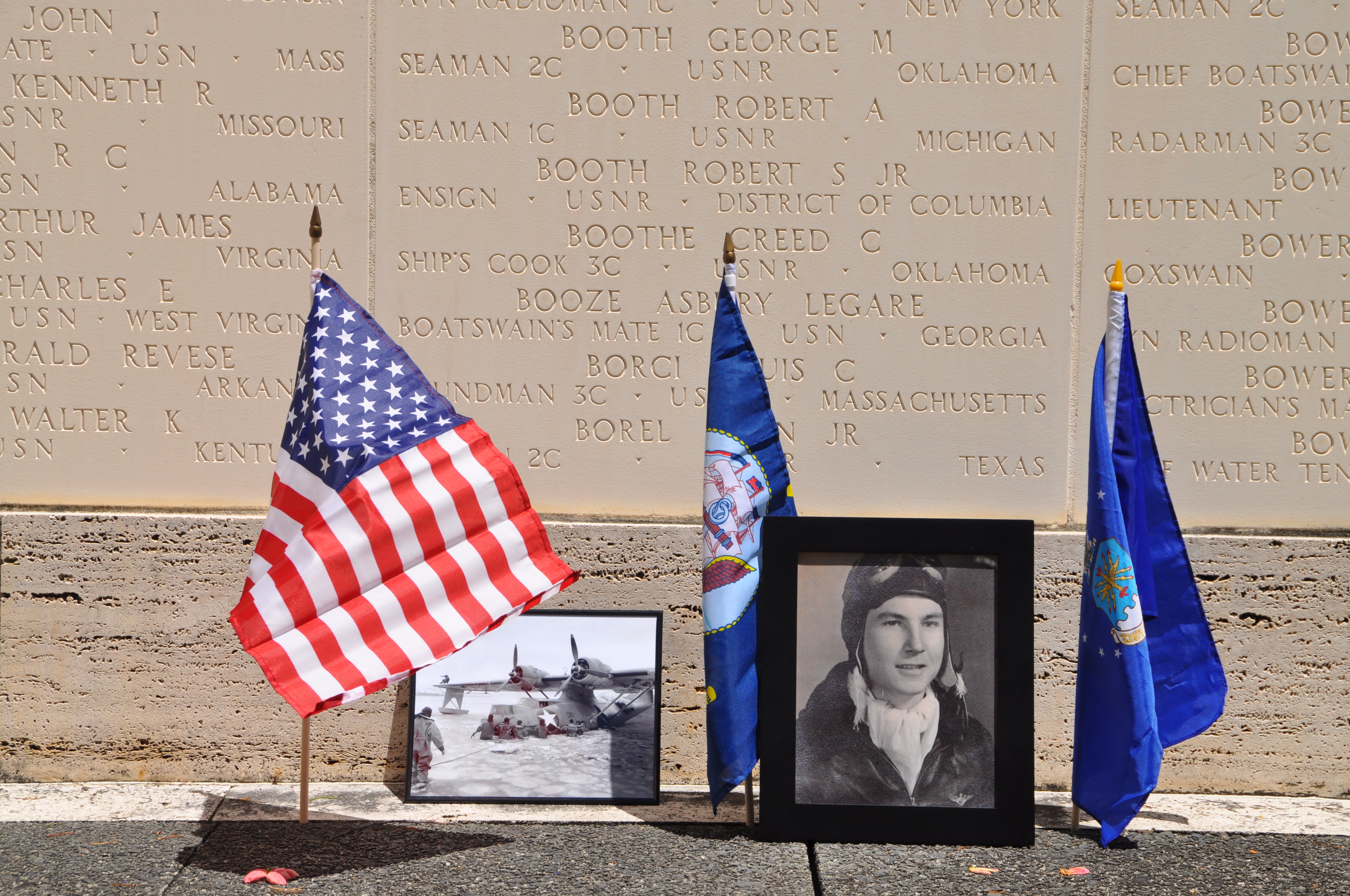 James “Jim” William Bolton died on January 17, 1944, when one of his Navy PBY-5 Catalina amphibious patrol plane engines exploded, and the plane crashed into the Pacific near Attu Island, Alaska. His body was never recovered. He was 23 years old. He is commemorated at the Honolulu Memorial on the Courts of the Missing in the National Memorial Cemetery of the Pacific in Honolulu, Hawaii, and on a marker in the Rosemont Cemetery in Newberry, South Carolina.