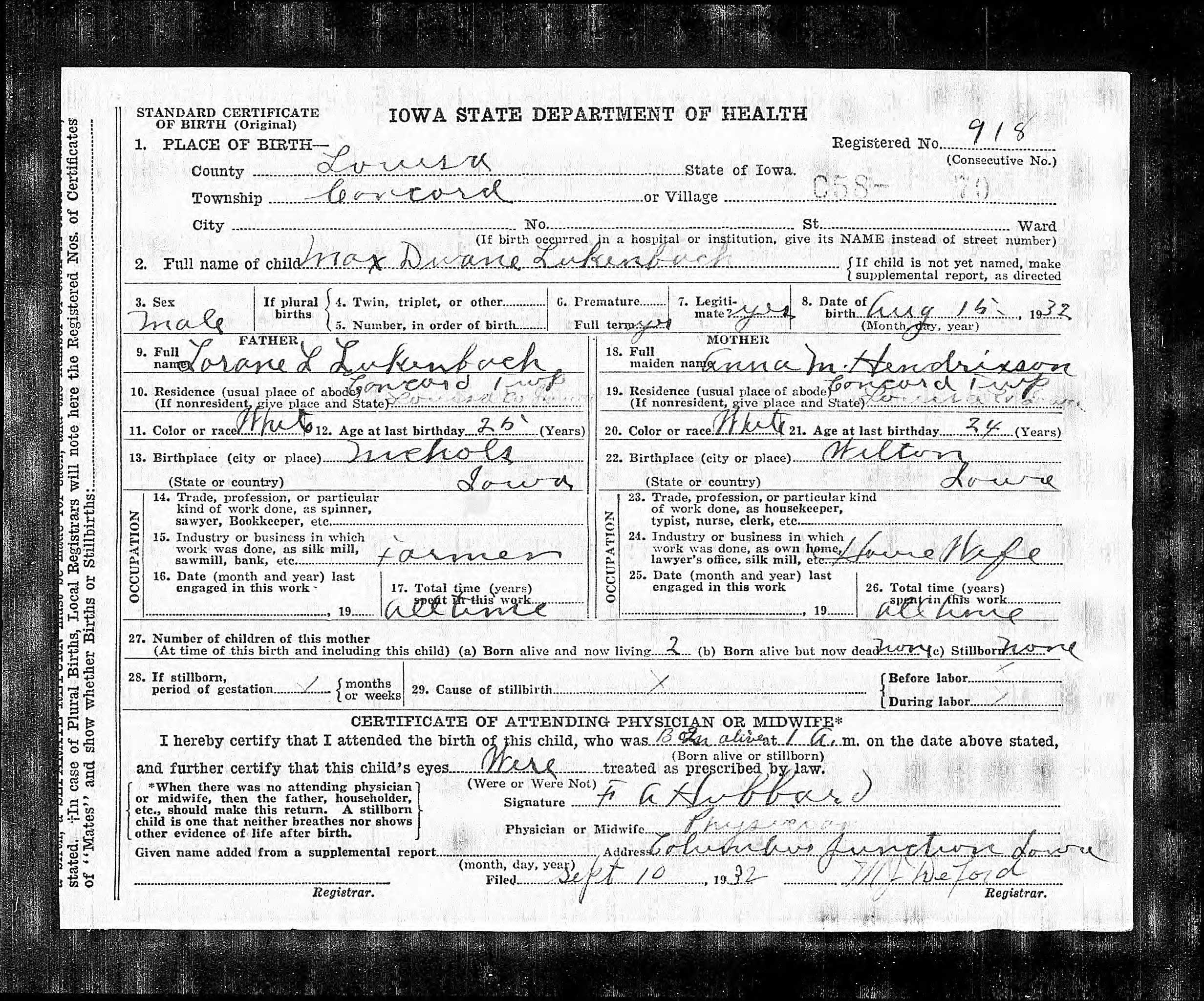 Born on August 15, 1932, Max Lukenbach grew up in the plains of Louisa, Iowa. He lived with his mother, Anna Marie, father, Lorain Leroy, and sister, Phyllis Jean. Lukenbach graduated from Columbus Junction Community School. At some point in the 1950s, his family left Iowa and moved to Tucson, Arizona.