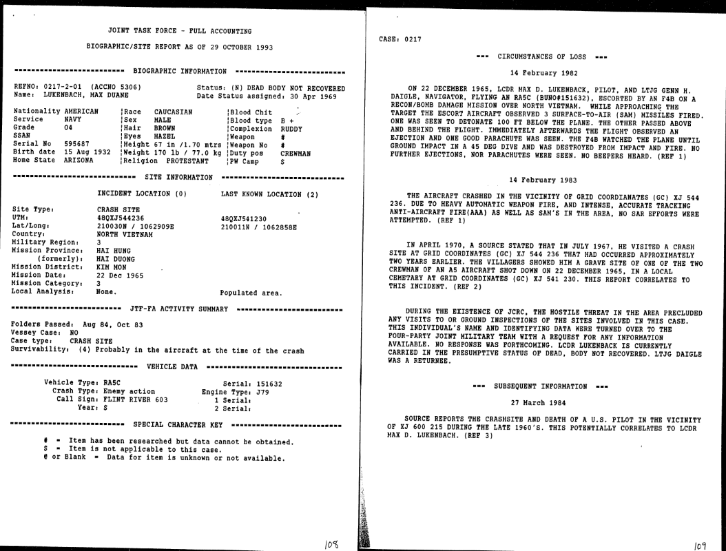 “CDR Max Duane Lukenbach.” Defense POW/MIA Accounting Agency. Accessed February 12, 2025. https://dpaa-mil.sites.crmforce.mil/dpaaProfile?id=a0Jt0000000KYkHEAW.