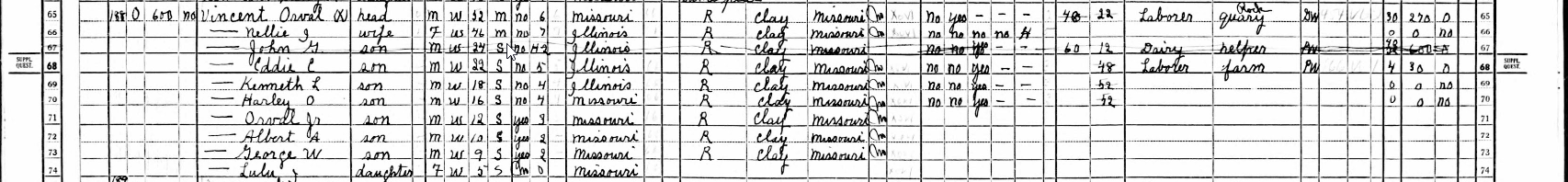 Orville Vincent worked as a laborer throughout his life, anything from odd jobs to being a farmhand and working at a rock quarry. Many of Vincent’s siblings followed suit. John worked as a dairy helper, and Ed worked as a farm laborer.