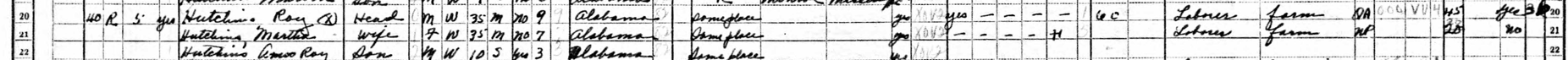 According to The Growth of Mississippi Counties and Cities, 1950 to 1960, Pontotoc County experienced a notable population decline of 13.8%, primarily due to the outmigration of tenant farmers. The Hutchins family was among those impacted by these changes, working as migratory tenant farmers on the Calloway Farm—now known as Wise Farm—as recorded in the 1940 U.S. Census.