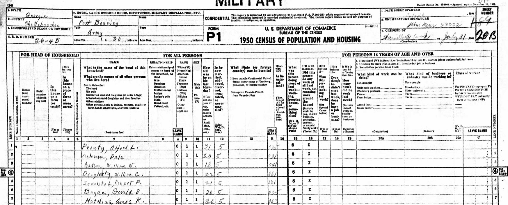 Georgia. Chattahoochee County. 1950 U.S. Census. Digital images. https://www.ancestry.com/.