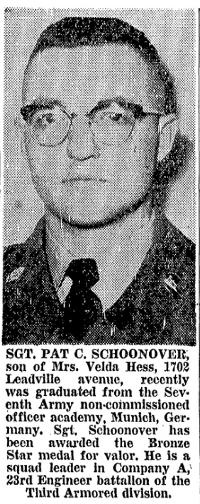 “Idahoans in Service: SGT. Pat C. Schoonover.” ”Idaho Statesman [Boise, ID], March 10, 1958. https://infoweb.newsbank.com/.