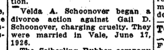 Gail Dell Schoonover. Oregon, U.S., State Marriages, 1906-1971. Digital Images. https://ancestry.com.