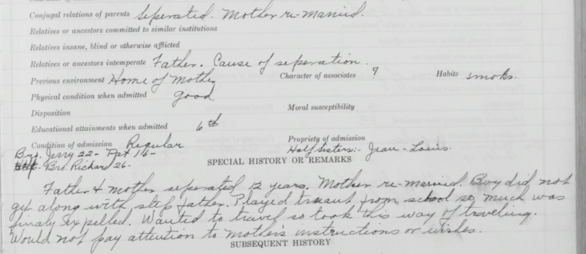 The school ledger indicated under “habits” that he smoked. Schoonover stayed at the Idaho Industrial School until he was released to join the armed forces in 1951.