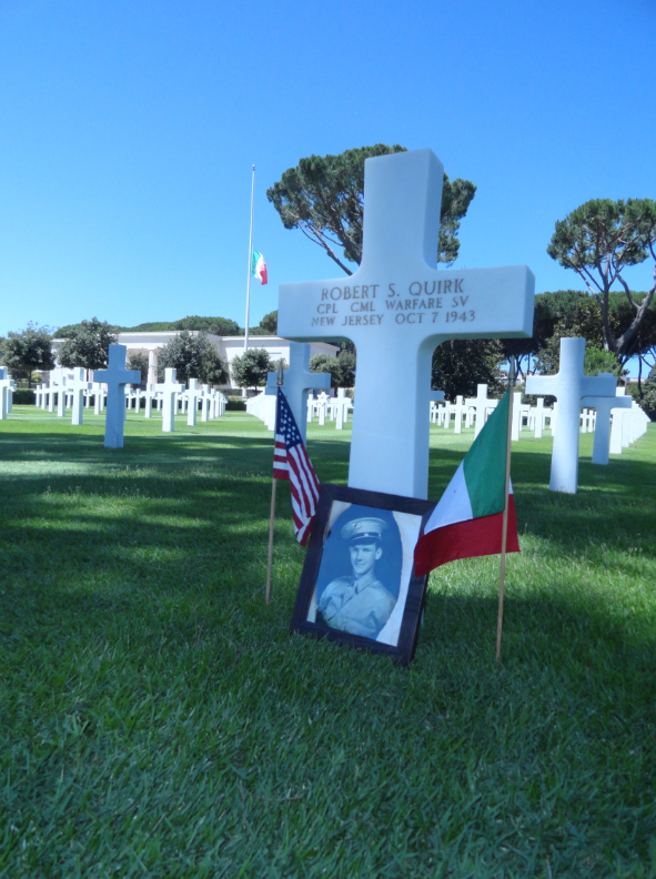 Robert S. Quirk’s body was buried in a temporary grave and his mother, Evelyn Quirk, was notified of his death. She was deeply affected by the loss of her only son, and her children noted that she was never the same after his passing. Quirk’s remains were ultimately transferred to Sicily-Rome American Cemetery, which was dedicated in 1956.