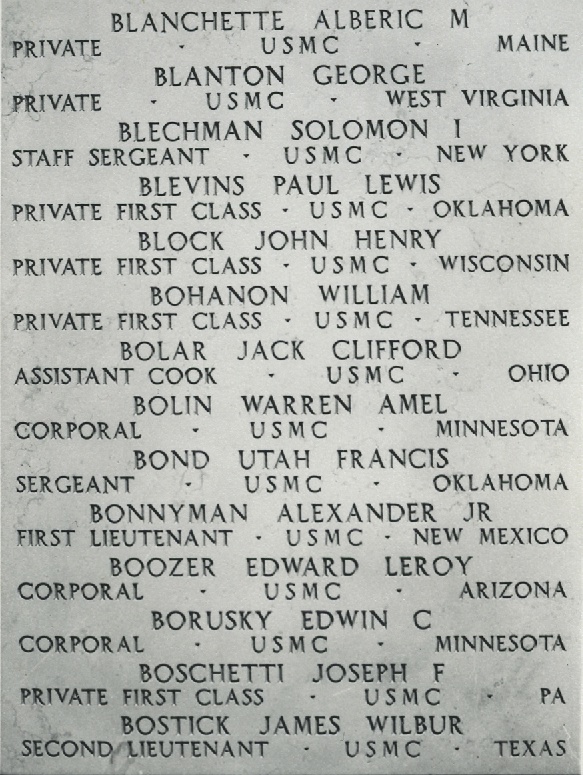 Warren Bolin, Official Military Personnel File, Department of the Navy. U.S. Marine Corps, Record of the U.S. Marine Corps, RG 127, National Archives and Records Administration – St. Louis.