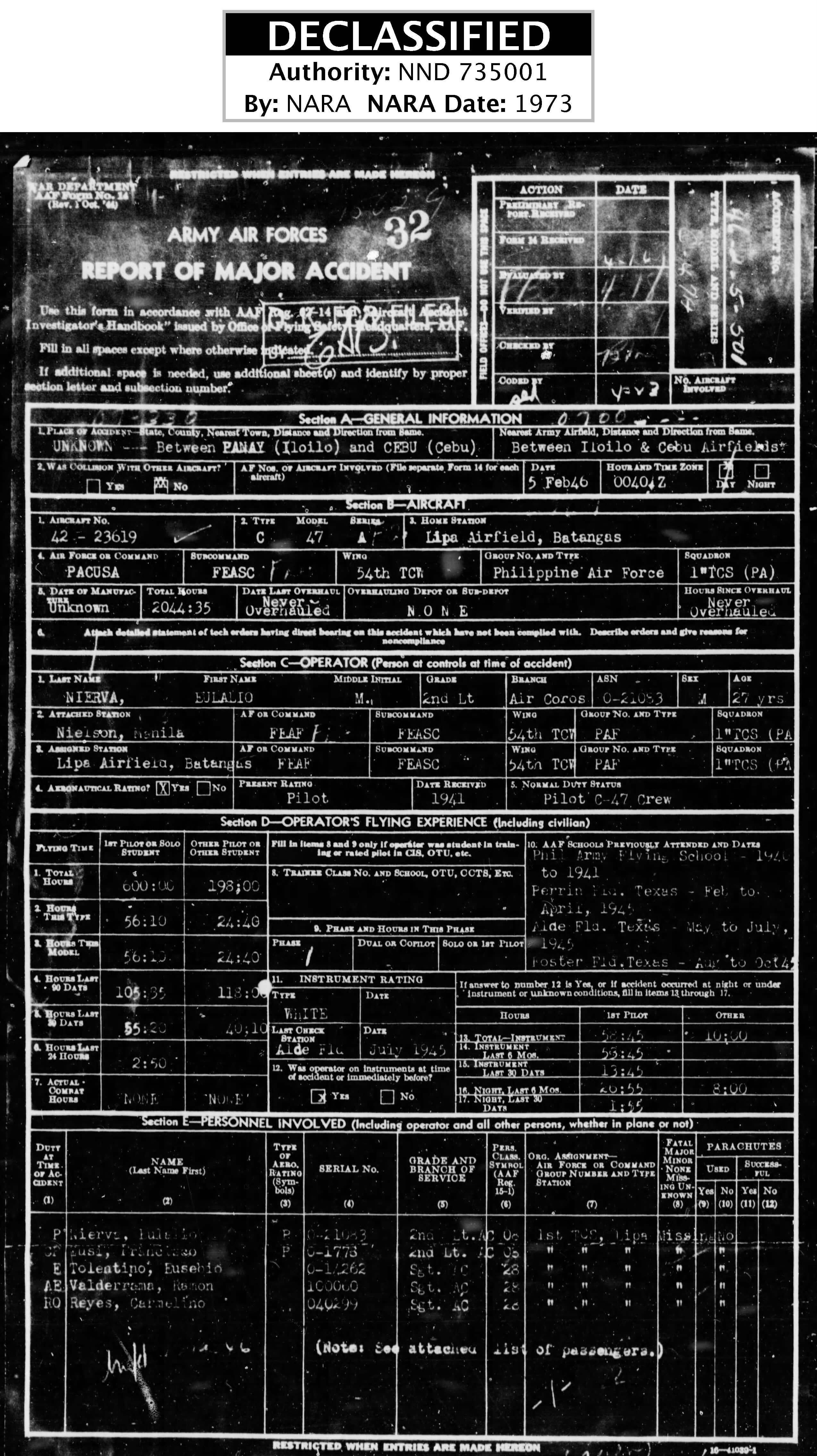 Missing Air Crew Report; Office of the Quartermaster General, Memorial Division, Identification Branch, 1942-1947, MACR 15029; National Archives at College Park, College Park, MD.