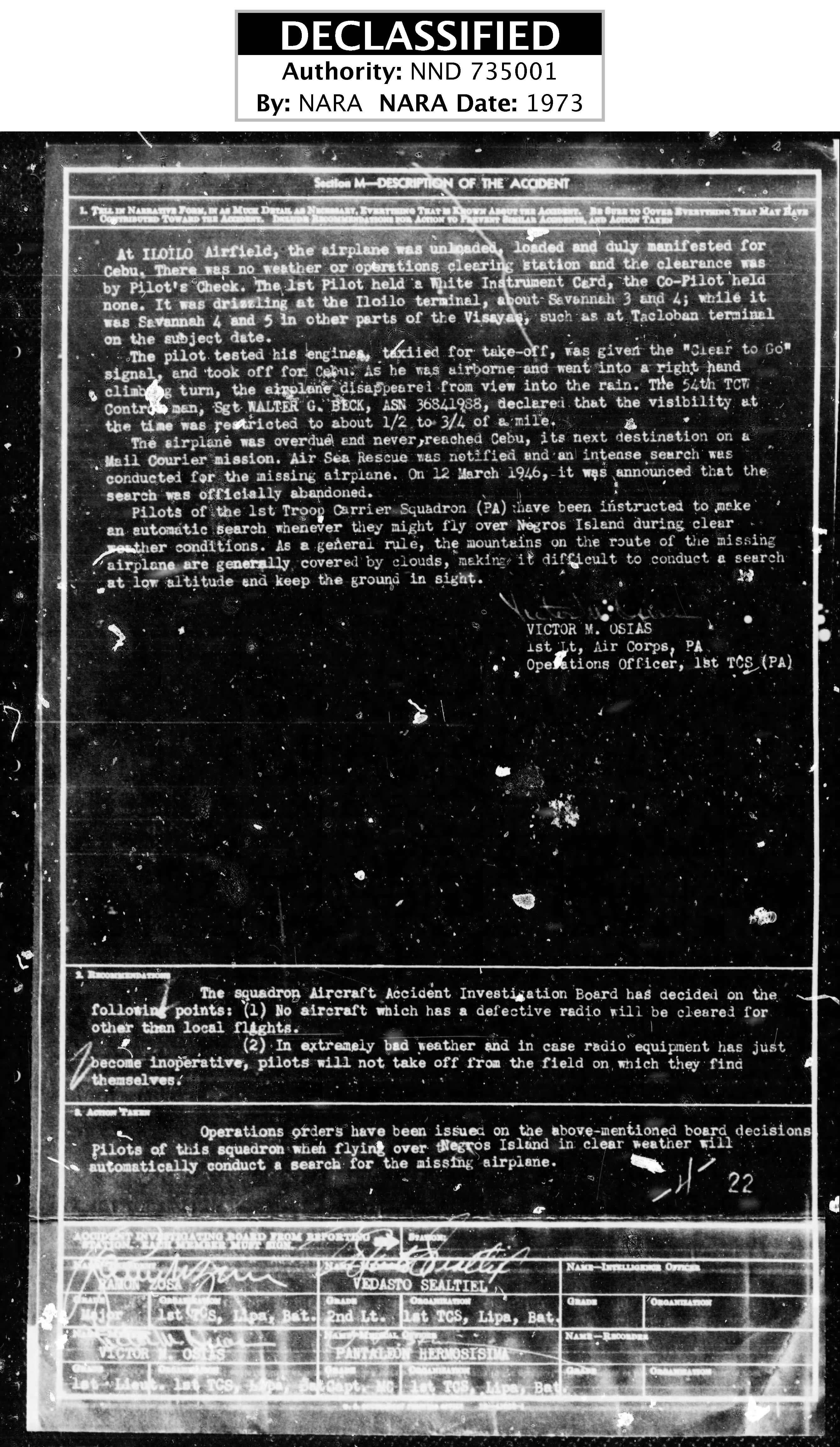According to an article in the Racine Journal Times, the U.S. Army initially declared that despite “extensive examinations…individual identification was impossible.” They also noted that while no “definite information” was available concerning what had caused the plane to disappear, they believed the aircraft was lost because of “inclement weather.”