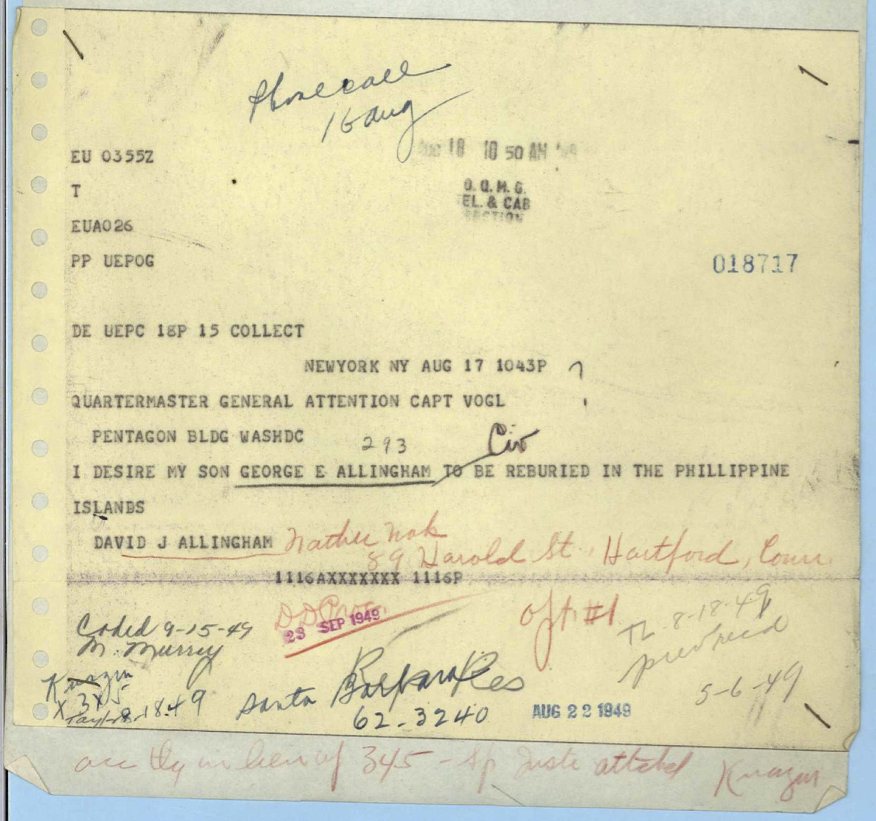 George E. Allingham, Individual Deceased Personnel File, Department of the Army.