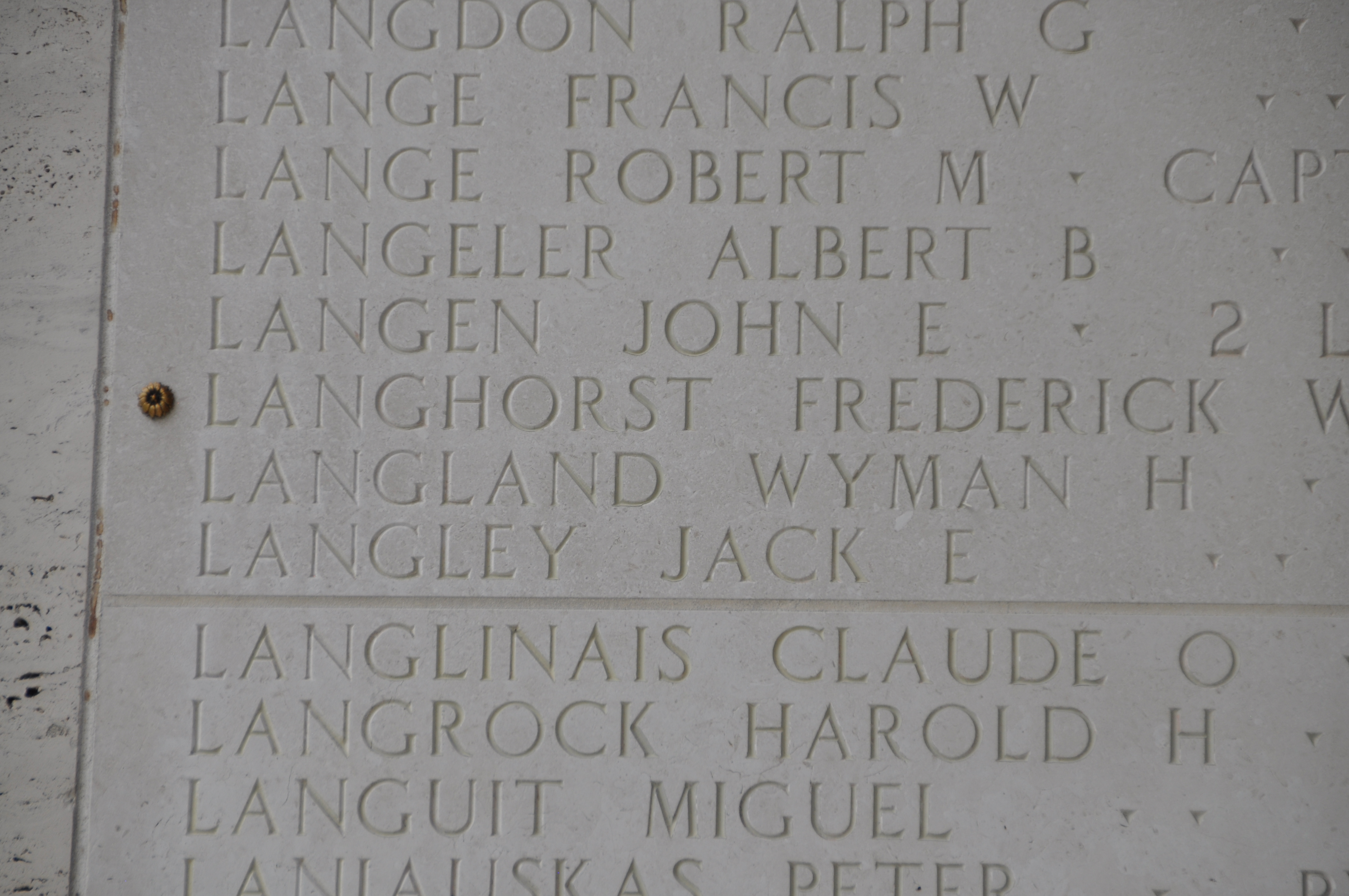 Frederick W. Langhorst is memorialized on the Tablets of the Missing at the Manila American Cemetery in the Philippines.