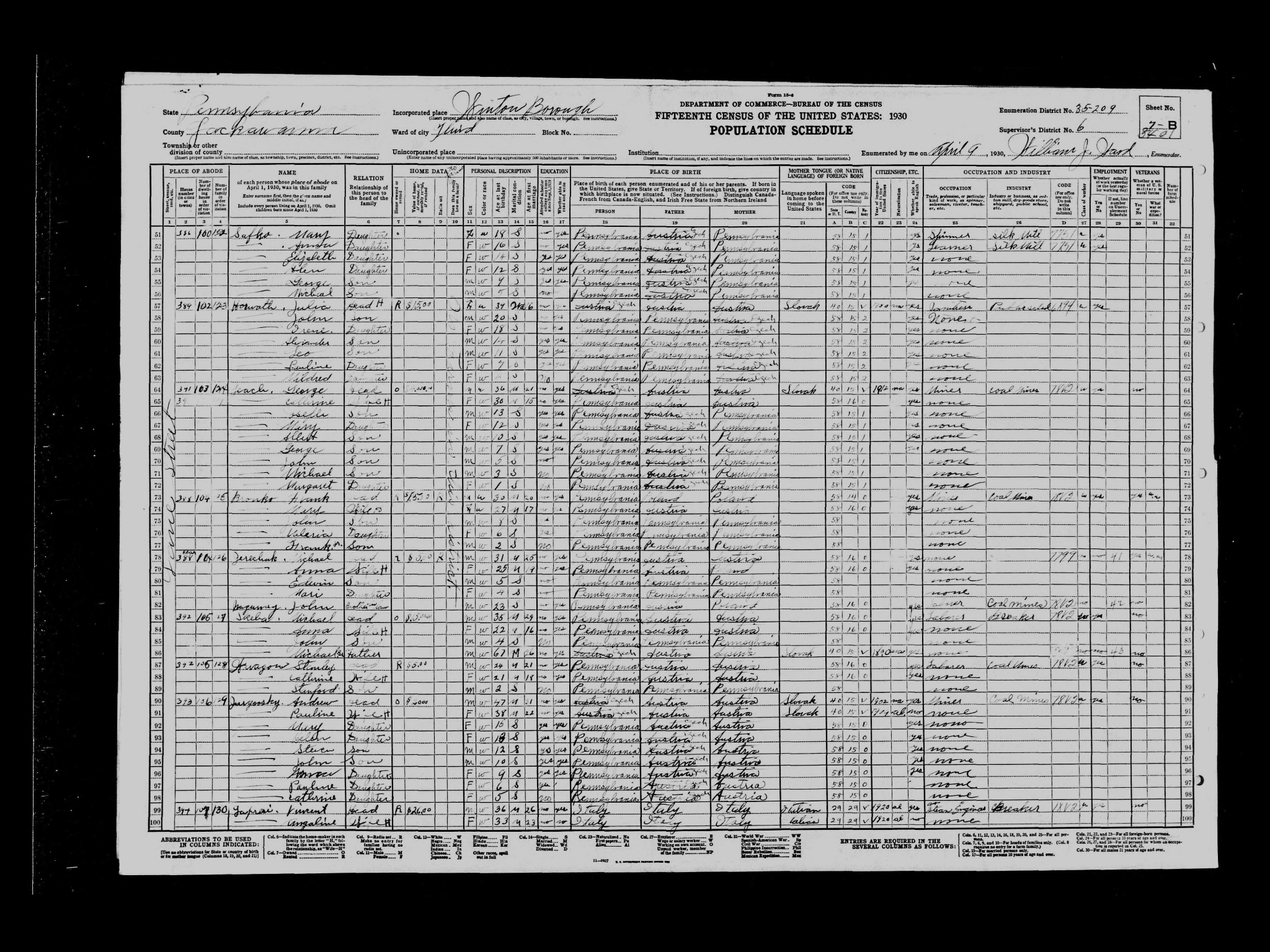 Pennsylvania. Lackawanna County. 1930 U.S. Census. Digital Images. ancestry.com.