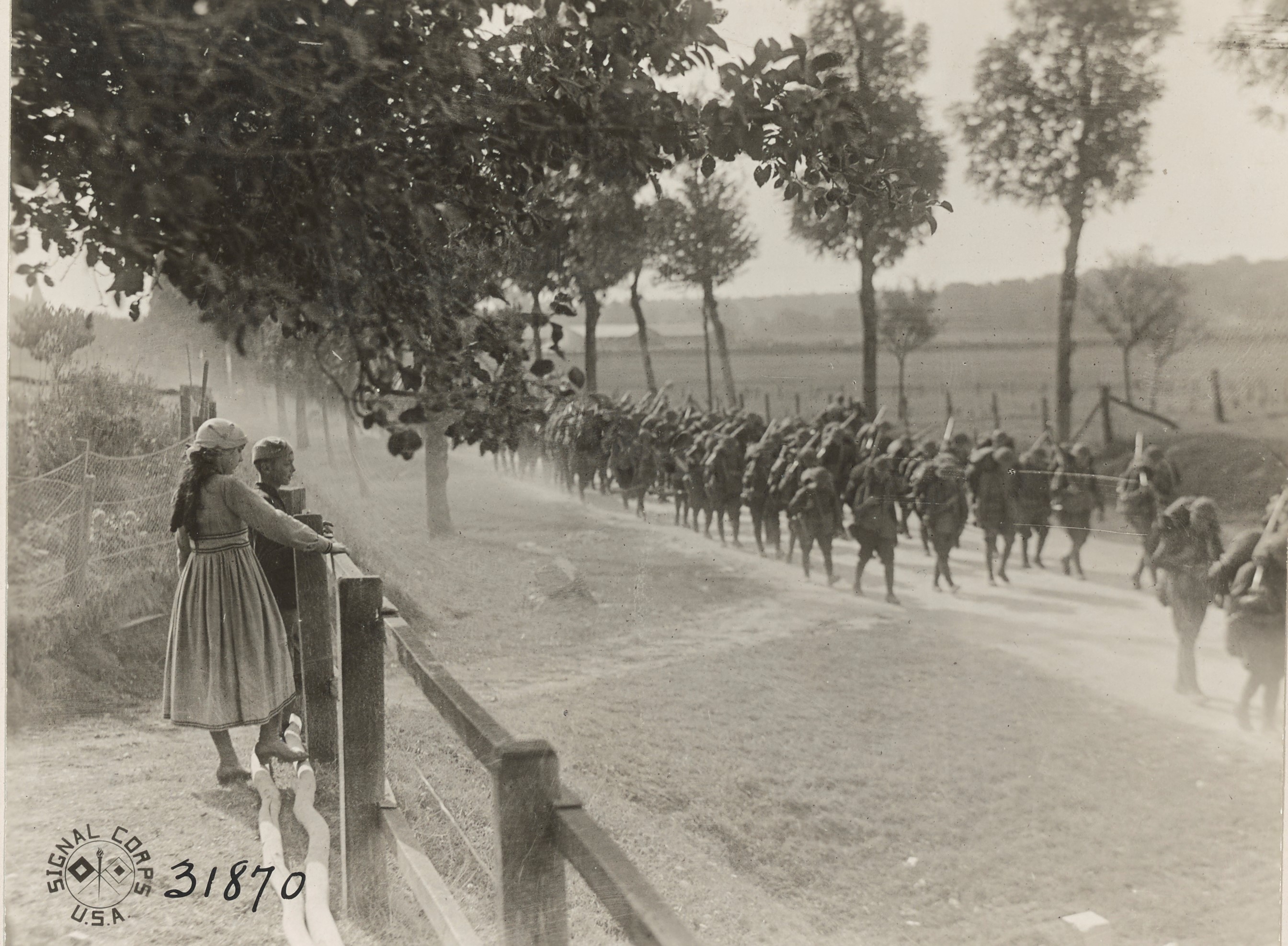 Seabrook, Sergeant First Class J. T. Men of Headquarters…362 Infantry, 91st Division starting on their hike… Photograph. September 4, 1918. National Archives and Records Administration (111-SC-31870-ac). Image.